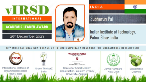 Bangalore, Karnataka, India – In a landmark celebration of academic excellence and visionary leadership, Subharun Pal has been honored with the distinguished International Academic Leader Award 2023. This prestigious accolade was presented at the 12th International Virtual Conference on Interdisciplinary Research for Sustainable Development, showcasing Mr. Pal’s significant contributions and unwavering commitment to his field.