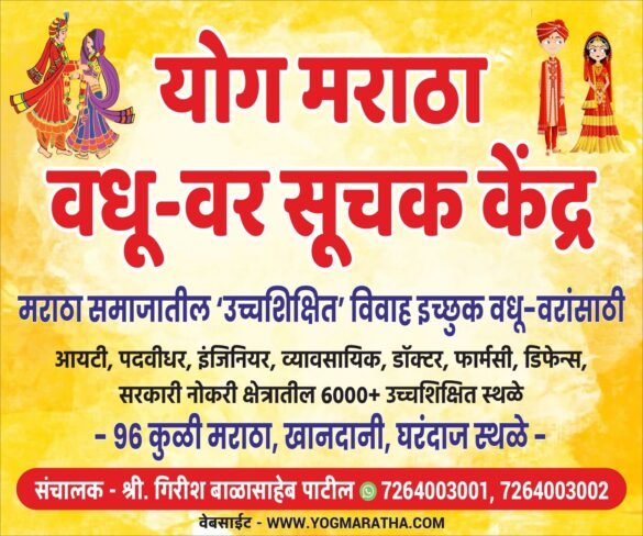 Yog Maratha Vadhu Var is an organization that brings experience to marriage by reviewing weight, height, color, education, temperament, age gap, caste, financial status, kundali, job or occupation, what will be the current place of residence. This institution is only for Maratha Brides and Grooms.